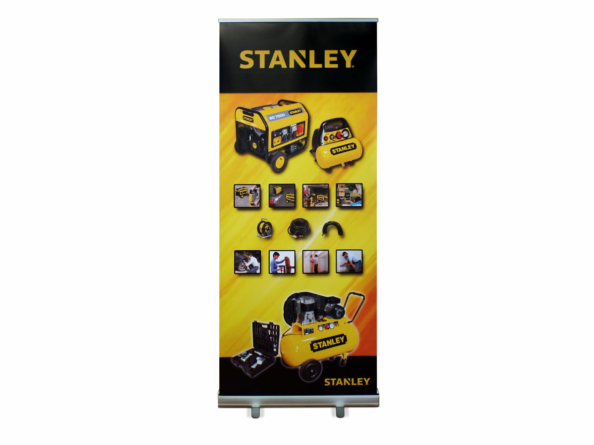 Der Banner, aus einer lichtbeständigen Polyester-Folie (230 und 330 mic), wird einfach ausgerollt und mit einer Aluminiumstange fixiert. Für den Abbau wird die Stange entfernt und der Banner rollt selbstständig ein. Sie benötigen keine Montagevorrichtungen am Einsatzort. Ein einfacher aber wirkungsvoller Begleiter für Ihre Präsentation mit einem hochwertigen Digitaldruck!