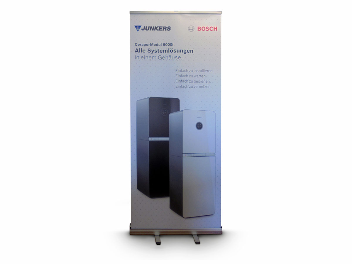 Ein Roll-up bietet eine Präsentationsfläche für Ihr Produkt bzw. Ihre Dienstleistung. Dabei ist er schnell auf- sowie abgebaut und in kompakter Form zu transportieren.